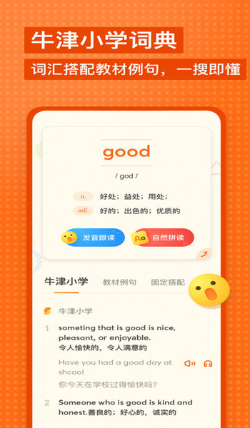 亮点一:引入权威优质的版权内容辅导孩子查词典是每个小学生家长都有感触的“日常”。作为业界首个少儿双语查词翻译APP,有道少儿词典全盘收录了《通用规范汉字表》的8000多个汉字,合作收录《牛津小学词典》的4000多条单词及常用语的权威翻译,涵盖《义务教育英语课程标准》4400余条规定词汇,覆盖整个小学阶段必修内容。只需输入搜索就能得到详细准确的释义,让家长告别低效率的手动翻查纸质词典时代,将孩子日常的碎片化查词学习带入立体的感官交互时代。