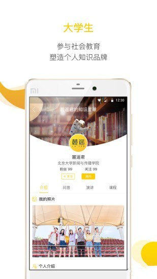 麓遥共享教育app是一个连接优秀大学生与高中生的知识共享平台,一个面向未来培养人才的互联网教育平台。麓遥共享教育app致力于搭建起大学与高中的桥梁,让高中生与大学生两个群体真正实现互连互通,给任何地方、任何一个渴望学习和成长的学生,都有机会与北大、清华、人大、复旦、中央财经、中国传媒等国内高校的学长学姐,以及哈佛、剑桥、牛津、斯坦福等世界名校的优秀留学生接触交流,向他们学习请教、和他们联谊交友、请他们指引方向,和优秀的人一起看到更远的未来!