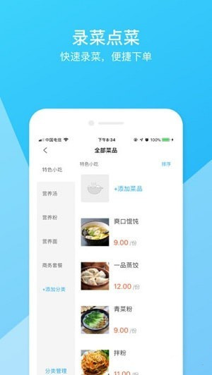 【扫码点餐】可生成点餐二维码,顾客扫码即可点菜,无需服务员及点菜宝,节省人力物力,提高翻台率,客人点餐无需等待。