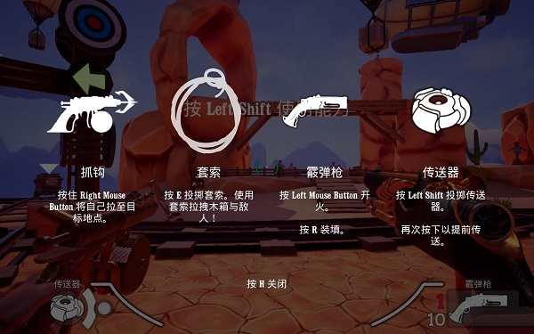 在《天午》中,玩家扮演一位西部牛仔,在一个充满层次感的地图中与其他人作战。不过与以往射击游戏不同的是,这款游戏没有“血条”的概念,只有把敌人都推下悬崖才能获得最终的胜利,而这一切都要依仗手上的钩锁和气枪以及脚下踩的喷射器。【游戏背景】