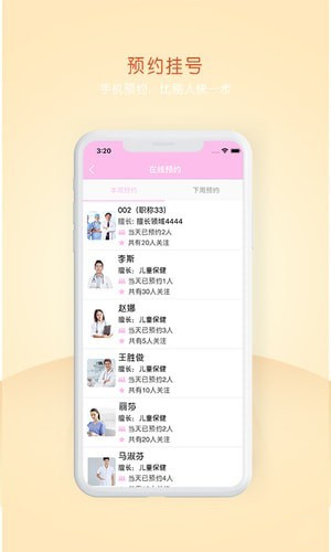 6、保健咨询,妇儿保app为家长提供预约功能,根据儿童不同的情况预约不同的专家医生;