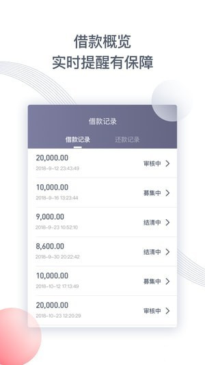 -记账工具:轻松记一笔,对您投过的每一笔网贷轻松记录,真正实现方便记账、轻松管理,及时对您的账单收款、逾期进行提醒通知,让您不会错过每一笔收益。