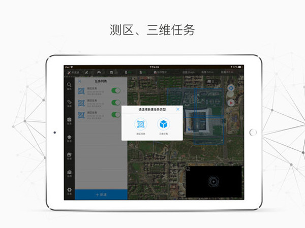 以往飞手开展测区任务时,在没有清晰底图的情况下很难选择准确的飞行区域,并需设置大量复杂参数,给飞手带来诸多不便。现在可参照智飞地图中加载的空间数据,轻触屏幕即可精确选定飞行区域,只需设置2个参数,系统将自动规划飞行航线,“一键起飞”即可圆满完成测区任务。