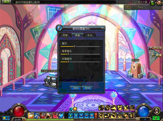 进入游戏后可以通过按键“Esc对游戏画面、音效,操作按键进行自定义。设置:游戏画面、音效、缩放特效、昵称显示、录制视频等各项设置。