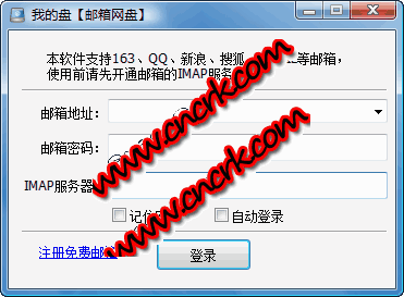 邮箱网盘 V1.0.0.4 官方安装版 邮箱网盘是一款把邮箱当做网盘的客户端软件,与传统网盘不同,您无须通过网页登录到网盘,它把邮箱虚拟成本地硬盘,只需要复制粘贴文件到虚拟盘,文件就自动上传到邮箱,使用十分简单。它支持163、qq、gmail、sina、sohu、21cn等所有支持imap协议的邮箱。