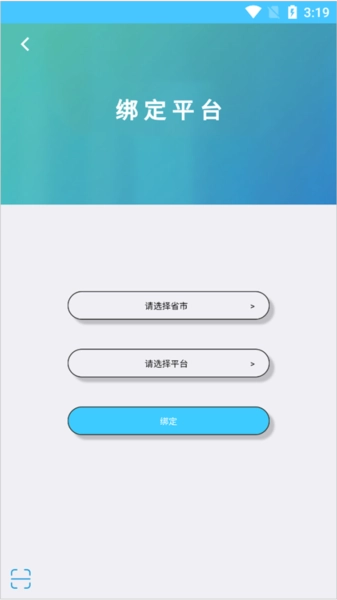 3、进入页面后,先点击选择省市与平台,随后点击绑定就行。