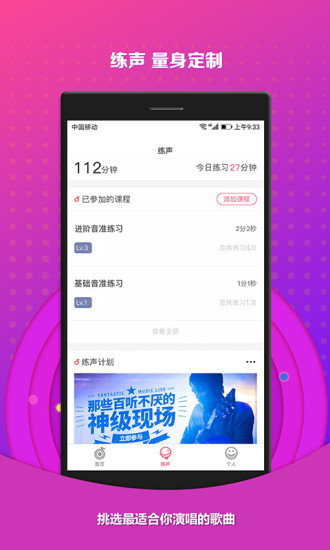 3、在线辅助练声全新上线,科学的提高你的演唱技巧;