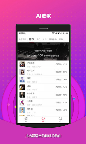 2、海量歌曲全面覆盖,推荐适合你演唱的歌曲;