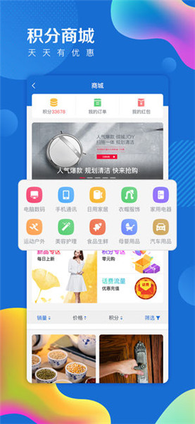 乐享生活:便民搜索、实时缴费、高考查询,生活服务功能不断丰富;积分系统,用户动动手指就能赚积分、赢实惠。
