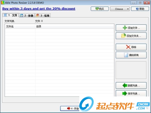 选择1-FILES,将照片导入==点击文件添加===将文件导入选择2-PARAMETERS,设置自己需要的压缩参数