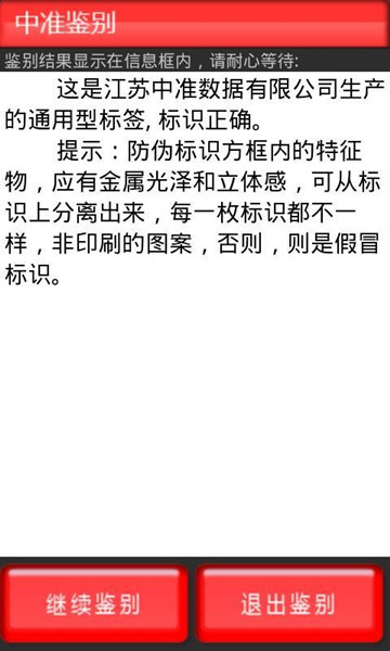 全面新升级,提高了鉴别的效率,稳定了鉴别结果,提高防伪性能.本软件帮助用户对中准产品进行快速准确识别。