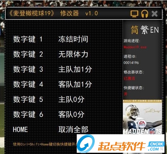 按Ctrl+Shift+Home,可以关闭快捷键检测,避免误按快捷键以及与游戏按键重复的情况,再按一次则重新开启。鼠标右键点击修改器可最小化界面。