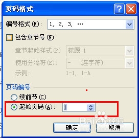 6、点击菜单栏页眉页脚栏中的页码,点击设置页码格式,在随后出现的窗口上选择起始页码,点确定,点保存。