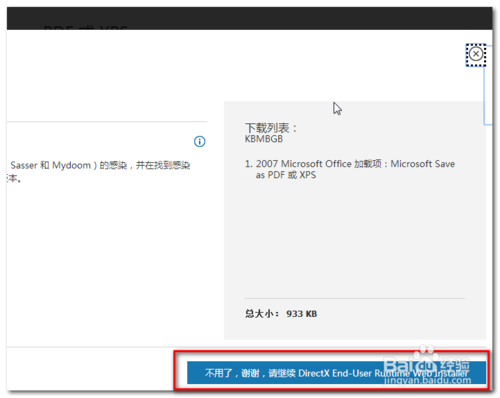 5、不要理会其它的,点击“不用了,谢谢,请继续……”[如图示]