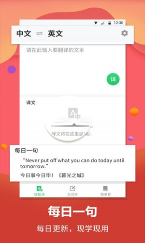 - 多样翻译包,满足各种使用场景,学习翻译、工作翻译、出国翻译、旅游翻译等- 支持复制粘贴英语文本到输入框,一键进行翻译,一边阅读一边查翻译更方便
