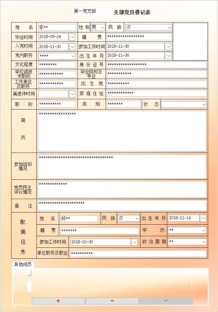 《党建活动室管理系统》是为社区党组织专门开发的一套管理系统,通过本系统的应用,规范了基层党支部的建设,提高了信息化管理水平。 系统主要内容包括: 基本信息 (填报单位,活动场所登记录入,党员信息录入,权限设置) 信息查询 (填报单位查询,负责人查询,县区查询) 内容全面,分类科学,在操作上,它集输入、维护、查询、筛选、统计和各种处理为一体,信息导入导出方便共享,灵活、专业的报表设计,形象、 增强的数据处理,完美的信息图形分析,用户可自定义自开发这些功能!