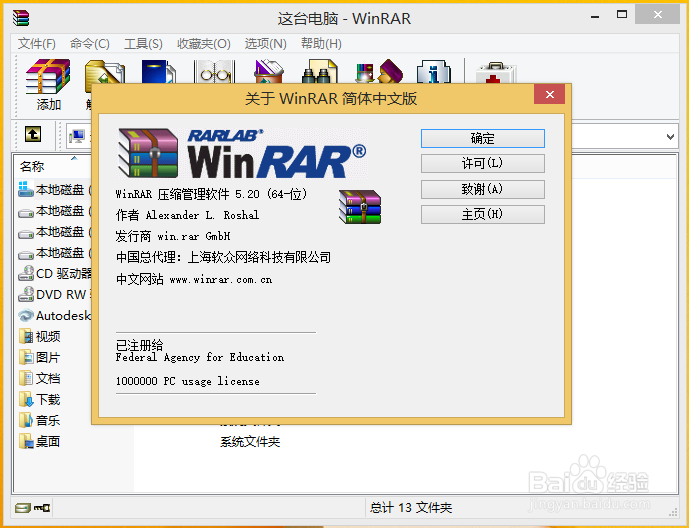 打开winrar软件,选择“帮助—>关于winrar”看到显示已注册说明已经激活了