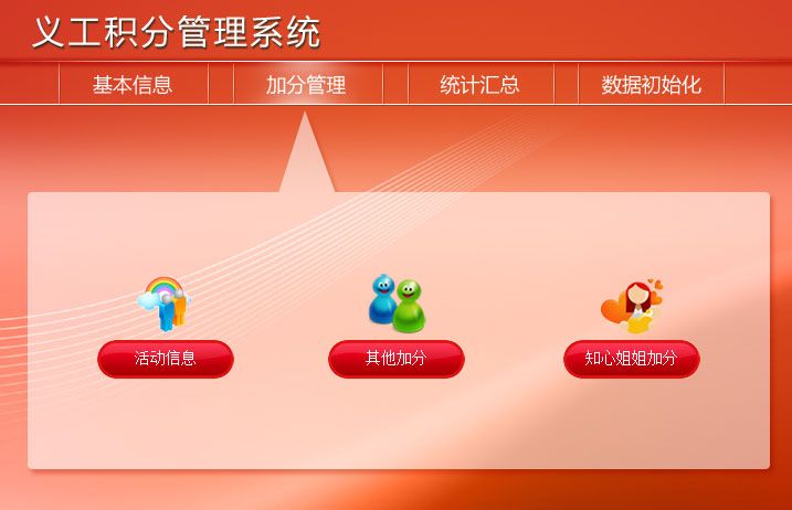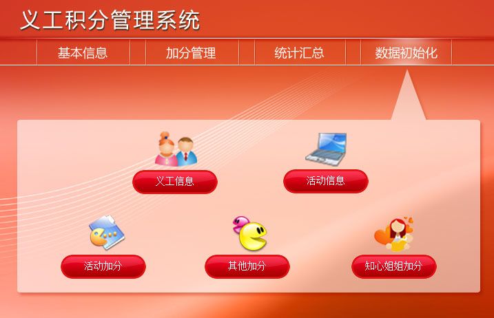 《义工积分管理系统》是一款适用于鼓励学生利用课余时间,积极参加爱心活动,是管理者用的一款软件,可以有效的提供工作效果,特此推出此款软件。具体包括如下: 1、基本信息:学生信息 2、加分管理:活动信息、其他加分、知心姐姐加分 3、统计汇总:积分汇总、积分明细、积分统计 软件界面设计简洁、美观、其人性化的管理可以使用户轻易上手,提升服务质量,提高工作效率,是协助各慈善机构优化管理的好帮手。