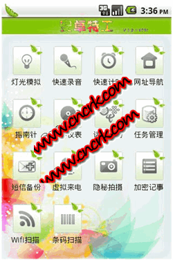 1.强大:(1)支持灯光模拟(2)支持隐蔽拍摄(3)支持虚拟来电(4)支持加密记事本(5支持)快速录音(6)指南针功能(7)支持蓝牙切换