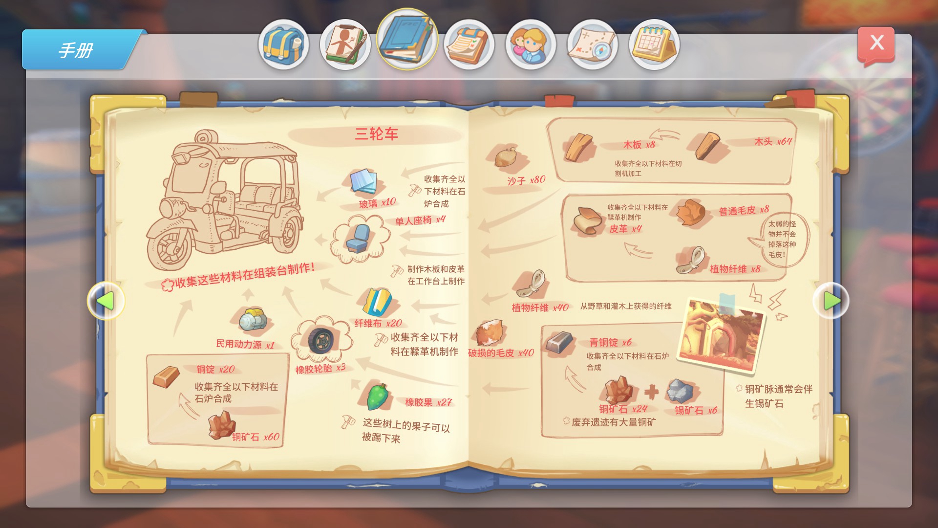 而这其实也是这个游戏的关键设计思路,通过《波西亚时光》的核心系统-工坊,来建造不同的设备(工具,载具,物品),以此来完成解锁新区域的条件。