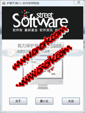 护眼天使 V0.1 绿色免费版 护眼天使是一款使屏幕罩在豆沙绿色中,达到起到一定的缓解眼疲劳,从而保护用户视力的软件。许多应用软件的背景,尤其是网页的底色通常被设定为白色,看久了,眼睛就会出现疲劳、酸涩,甚至流泪的现象。所以对眼睛刺激最大的就是屏幕底版的白色。建议大家在长时间用电脑后,经常看看蓝天、绿地,就能在一定程度上缓解视疲劳。同样的道理,如果我们把电脑屏幕和网页的底色变为淡淡的绿色,也可在一定程度上有效地缓眼睛疲劳等症状了。