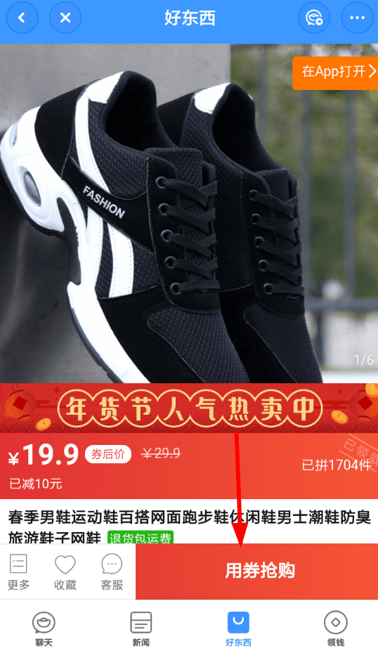 2、找到想要购买的商品之后,大家需要选择右下角的“用券抢购”按钮,这时候就可以选择商品类型进行下单了。