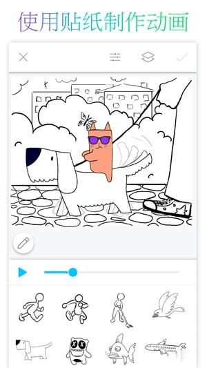 · 使用动画贴纸和添加自定义的动作;· 绘制逐帧动画;