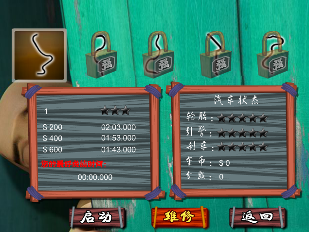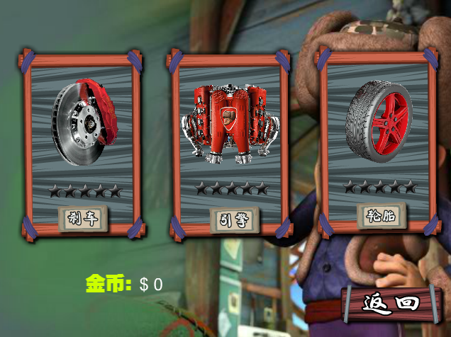 2、选择要维修的部件,刹车、引擎、轮胎皆可升级。