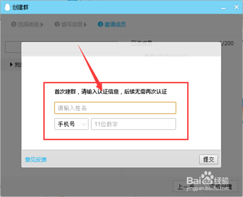 如果是首次建群,需要验证身份,输入名称、手机号认证。(只有第一次认证需要验证身份、以后再建群就不需要了)