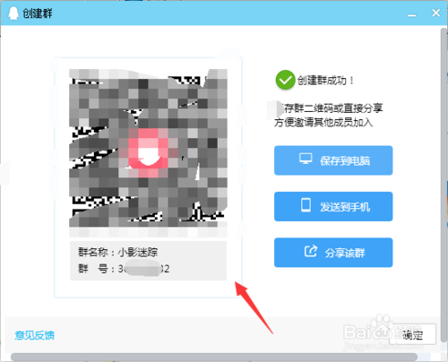创建群组完成后,还会生成一个二维码,好友通过扫二维码加入群组。