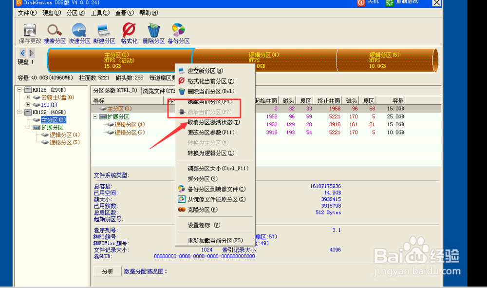 执行完操作后,我们的硬盘分区就此完成了。在这个直接运行DiskGenius工具中,软件还自动干了一件事,那就是把主分区激活了,当我们分好主分区后,就发现主分区一直是激活的。有的时候划分分区后主分区时不激活的,需要单独操作一下。因为主分区如果不激活,即使系统安装成功也不会从主分区启动。在这里可以单击主分区,有个取消分区激活状态的按键,执行一下这个操作试下。