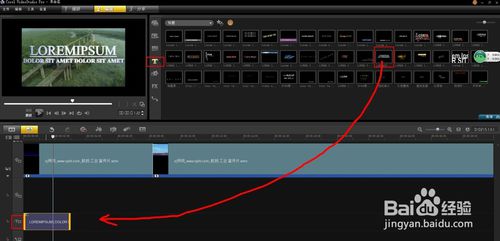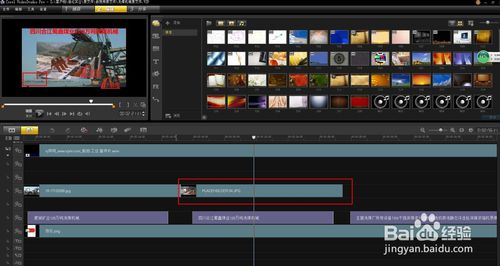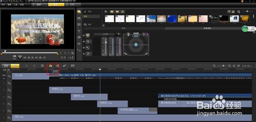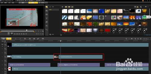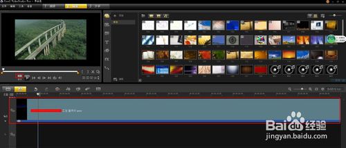 3、然后把会声会影顶部的素材拉入到下边的素材序列面板中便可。