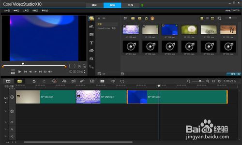 6、这样,会声会影中的视频素材便会被分割成为多个部分啦。