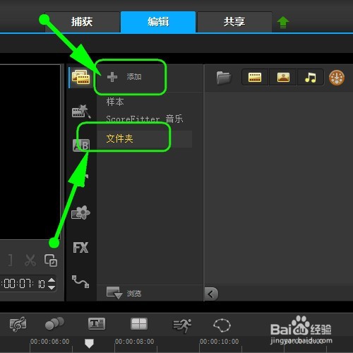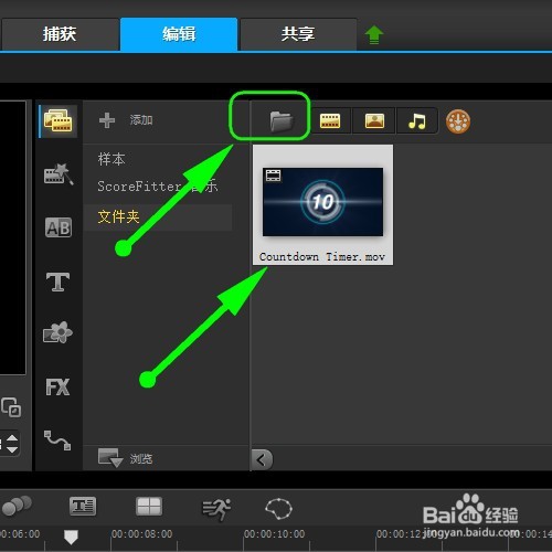 2、然后点击导入图标(文件夹形状的)把视频导入到会声会影中便可。