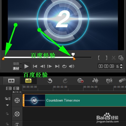 4、之后便可看到会声会影预览面板处的左右尽头的游标。