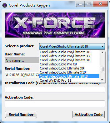 会声会影2018注册机是专门针对软件而开发的序列号生成器,可以轻松生成序列号和激活码,以及安装代码,可以帮助用户完美激活软件,解除所有的功能限制,让用户完全免费使用。软件具备简单直观、独特创意、灵活有趣等特色,拥有上百种滤镜和特效、调控速度、从多机新增视讯片段等等功能,可以让你您尽情挥洒创意,轻松创作出丰富的视频产品。并且全新的新版在功能上进行了新增、升级以及增强,和之前的会声会影x10相比,全新功能增加了镜头校正/角眼校正、分割画面视频模板、调整数据轨高度、智能导线对齐工具等功能;增强了360度视频编器、停格动画、轨透明度、剪切视频、双窗口显示、移动和缩放、360视频转标准视频、在时间轴上插入章节点等功能,并且能够支持hd和4k格式编辑,还优化了全新的intel第8代核心处理技术,可以帮助编辑人员更好的提高工作效率。全新版本的功能强大,操作简单,适用于各种不同技巧等级的使用者,目前支持提供1500多种特效,让您可尽情表达自己的创意视野;支持以hd和4k格式编辑,可制作画质绝佳的影片。