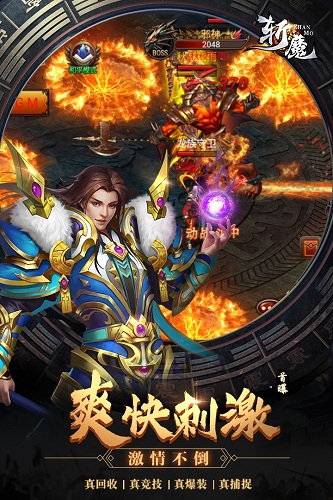 斩魔是一款暗黑风格的2D角色扮演类手游手游,拥有超酷炫的坐骑、威武的神装、靓丽的羽翼、拉风的称号系统,更有百种boss可以爆出各种装备,在游戏中,玩家可以自由交易卖装备回收元宝,和兄弟们激情奋战的同时体验到收获的快感。