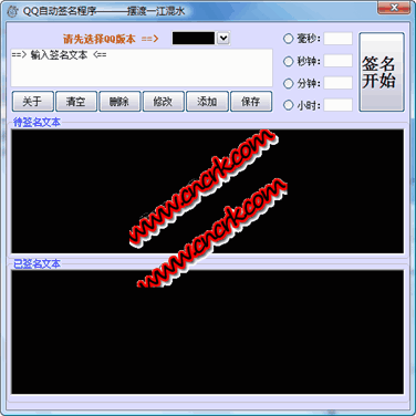 QQ自动签名程序是一款可以设置多条不同的签名内容,然后设置签名更换好时间,他时间可以定毫秒、秒钟、分钟、小时设置,程序会定时自动更换你的QQ签名。