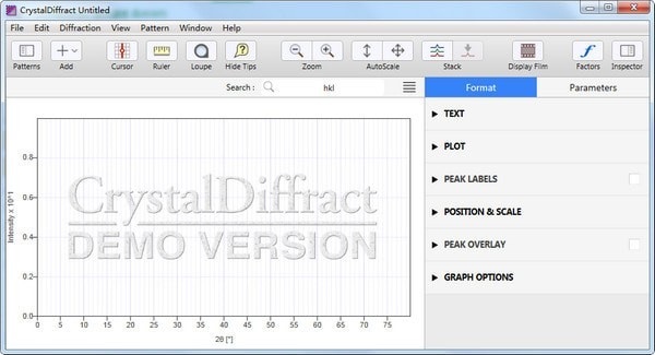 CrystalDiffract提供了众多的图形控制。您可以从众多的图绘风格里选择图像,您也可以指定一个精确的图绘系列或者搜索一个特定的峰值。X和y轴由放大工具和自动缩放选项来控制标度。您也可以通过前后调整来排序多重衍射图和自动堆迭或折迭显示。CrystalDiffract支持高分辨率打印,为了配合您打印机的分辨率,您可以对模拟衍射概况进行重新取样。您还可以用您选择的文本文件和xy格式的方式导出衍射痕迹来替代打印。