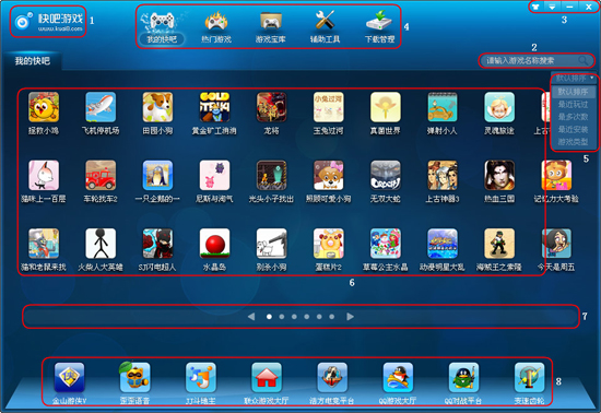 四、快吧导航栏:快吧所有游戏类目和下载管理,如图1区域4