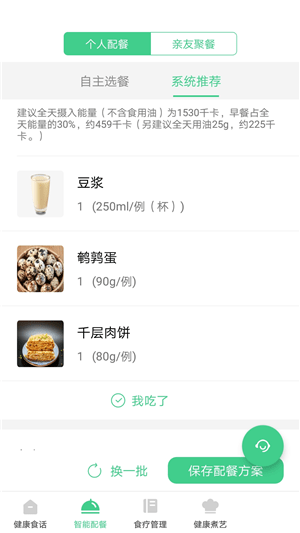 运用大数据健康管理系统,强大的智能算法,一键就能获取媲美专业营养师团队为您量身搭配的每天食谱。