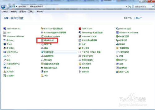 3、在小图标中找到【程序和功能】并打开