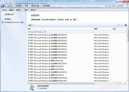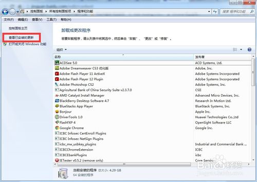 3、进入程序和功能窗口后,点击左侧窗格中的“查看已安装的更新”,即可查看当前系统所有的更新