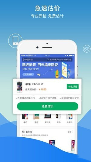 服务理念:智能评估、高价回收、隐私无忧、安全保障、便捷操作、绿色 环保。