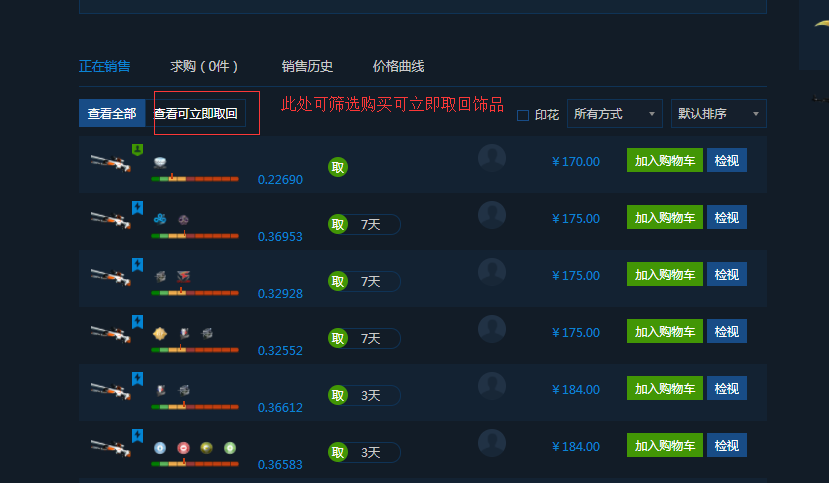 因CS:GO官方交易规则限制,物品每次转移后需要冷却8天才能再次交易。您在购买的时候可筛选"可立即取回"商品以便能立即发货到您的Steam库。如购买到带有冷却时间的物品,则需要等待冷却时间结束后才能接收物品。