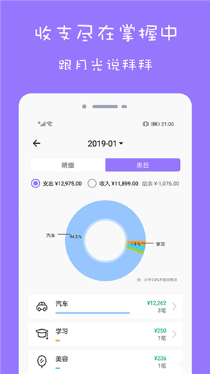 快捷记账:简洁易用的记账功能,记账仅在3秒之间;强大图表:丰富多维度的图表功能,助你分析消费情况;