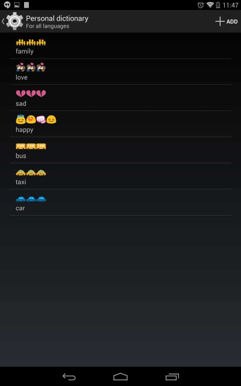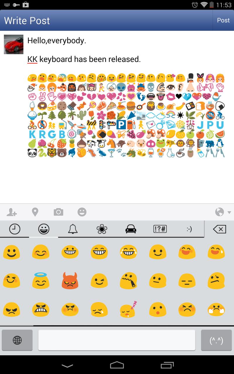 KKemoji输入法是免费的,最好的多彩表情符号,表情,文字面,贴纸和笑脸键盘你见过!亮点: 全表情符号,表情符号,表情符号和文本的脸显示与超过3000个免费表情符号 绘文字键盘:支持短信表情符号到其它手机 输入表情符号无处不在方便像信息,文本,电子邮件,笔记,联系人 手势打字动态浮动预览 超过30字典不同的语言 支持英语/法语/意大利语/德语输入的建议 下一个字的建议和当前的单词补全 自动校正 单词预测(通过字母/滑动滑动输入一个字)滑动输入 QWERTY / QWERTZ / AZERTY /德沃夏克/ Colemak / PC输入风格 建议的联系人姓名 自动大写(大写每个句子的第一个字) 支持紧凑的左,右结构紧凑,布局拇指 支持最小的,体积小,正常,大,最大的布局