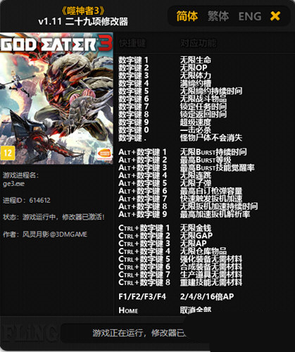 数字键 1 - 无限生命数字键 2 - 无限OP