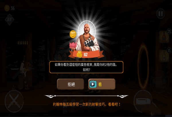 独特的游戏玩法让玩家无需左右上下移动,只需要不断点击攻击键和技能即可,每一次提升人物角色的等级都会解锁对应的双枪技能和双刀技能哦,并且越晚解锁技能越炫酷,