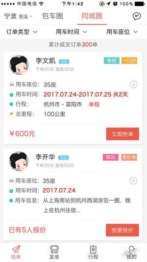 发布竞价订单,对口车队迅速报价,可以查看车况和价格,选择哪个车队中标!(图片报价、车祝)